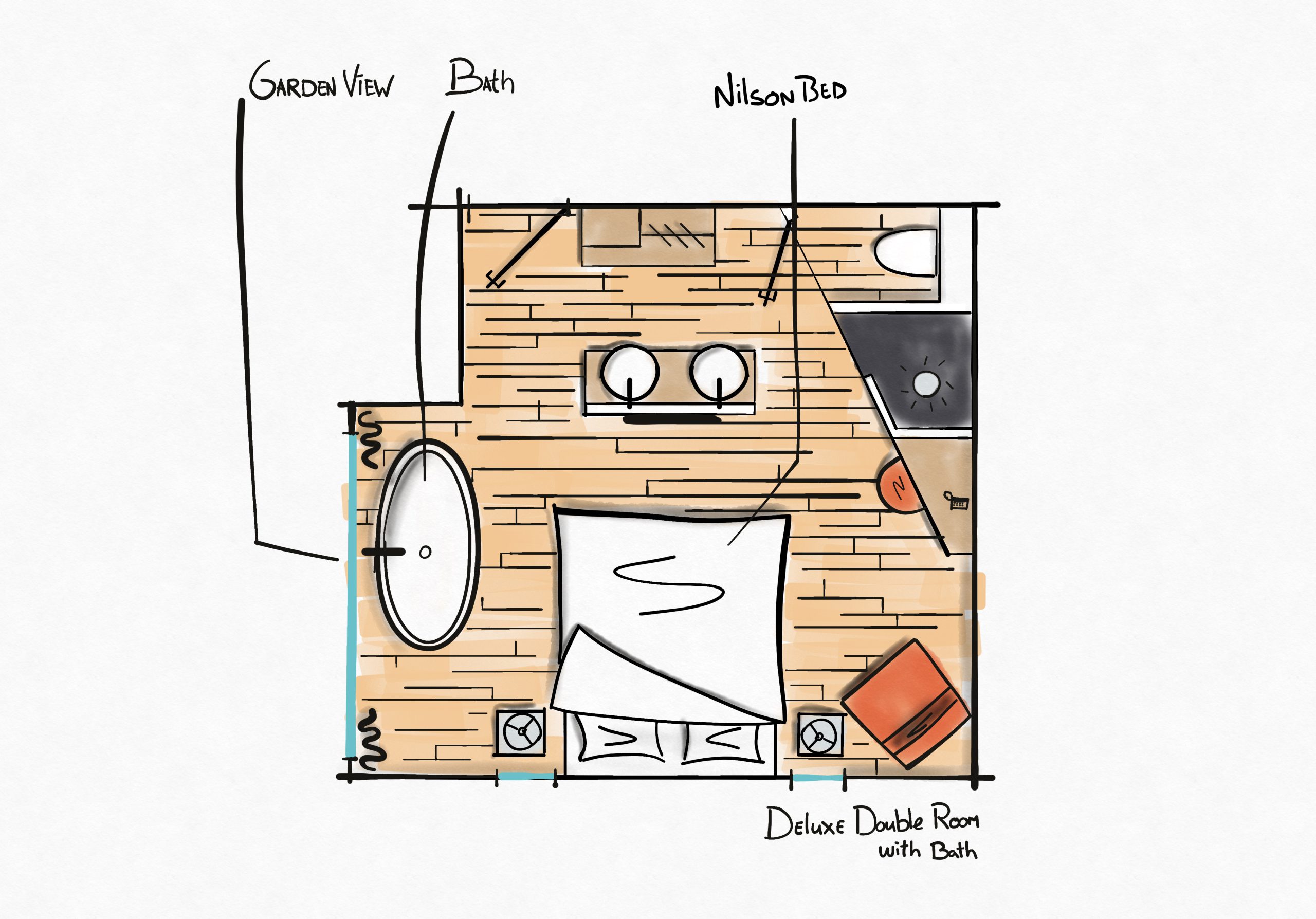 Half-open badkamer | Inloopdouche | Vrijstaand bad | Dubbele wastafel | Apart toilet | Badjas met Slippers | Gratis Wi-Fi | Koelkastje | Kluis | Föhn | Koffie en Thee faciliteiten | Airco | Bureau | HD-TV